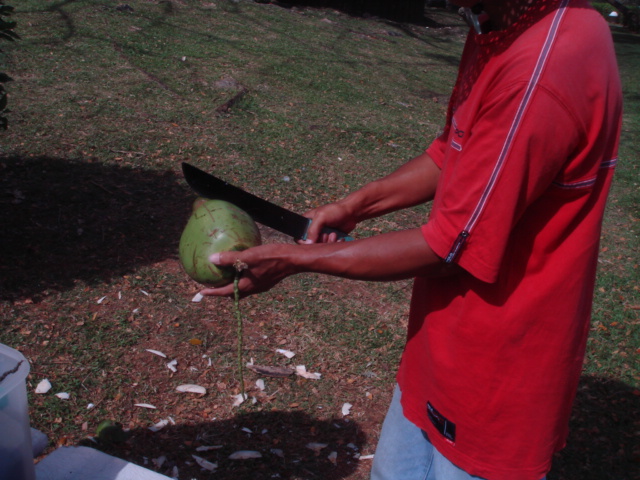 일제의 칼로 야자의 열매를 나누어 팔아 줍니다.(◎▲◎;)