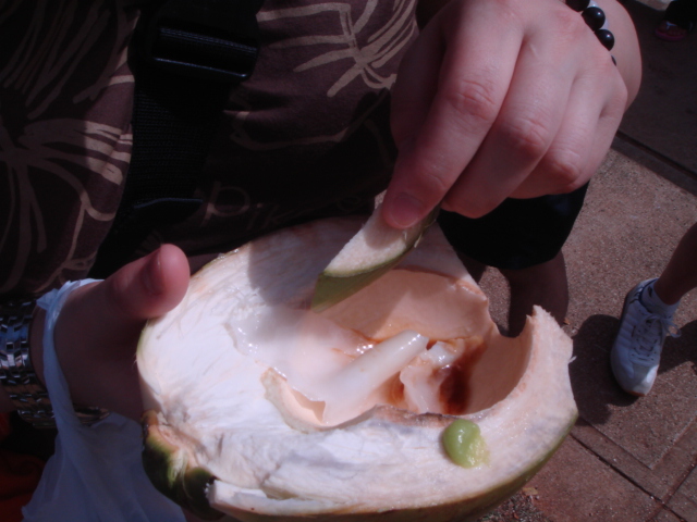 호텔의 근처까지 가면, 야자의 열매를 팔고 있었습니다. 하나 500won