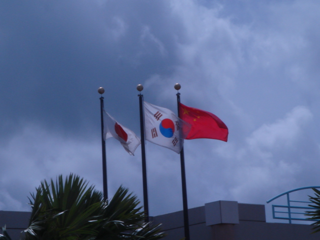 일본·한국·중국의 국기가 장식해 있었습니다.(◎_◎;)