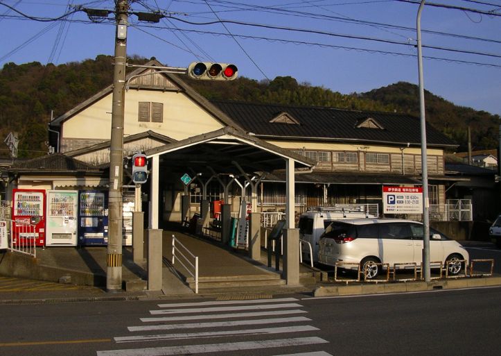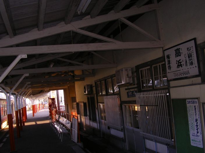 목조의 낡은 역사입니다.마츠야마 관광항행의 버스의 승강장이 병설되고 있습니다.
