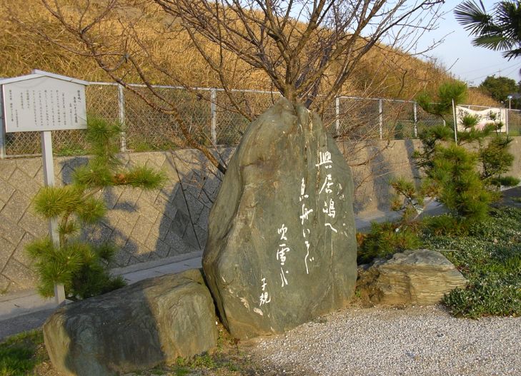 마사오카 시키가 읊은 하이쿠가 새겨진 비석이 있습니다.