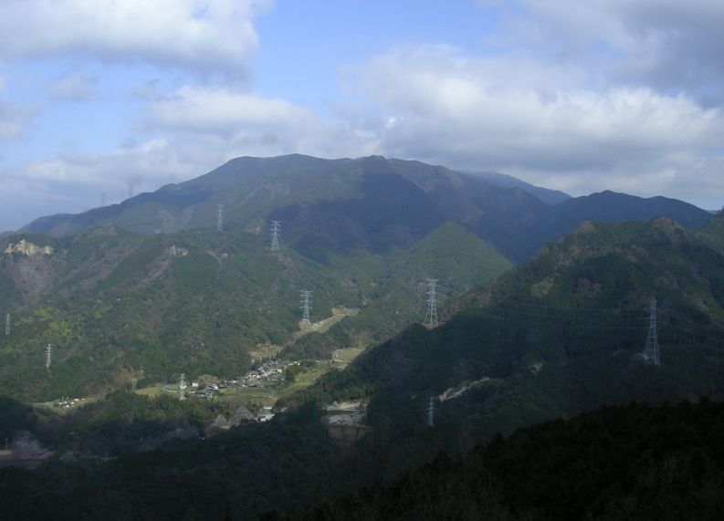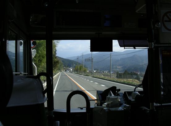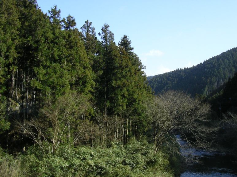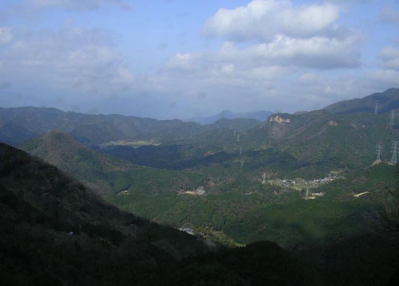 산길을 달리는 버스로부터의 경치입니다.시코쿠의 산은 갑작스럽습니다.