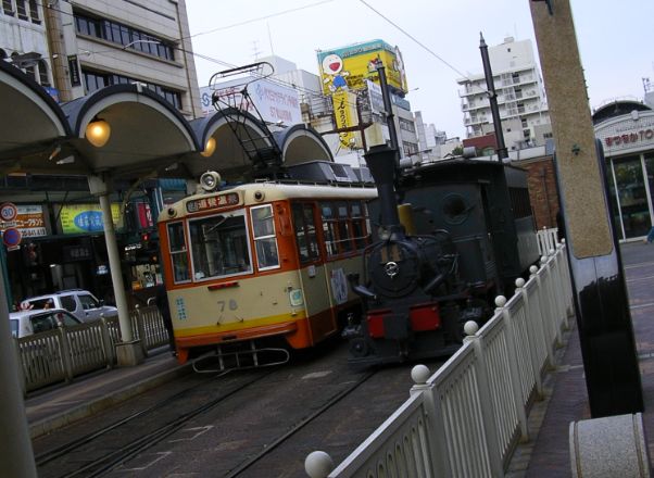 마츠야마시의 중심부에는 노면 전차가 달리고 있습니다.