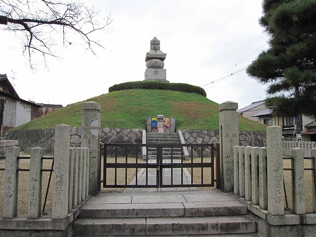 한국 출병 시에 전공이 증거로 삼아서 잘라 떨어뜨려, 소금절이로 해 가지고 돌아간 조선병의 귀나 코를 모신 오륜탑.