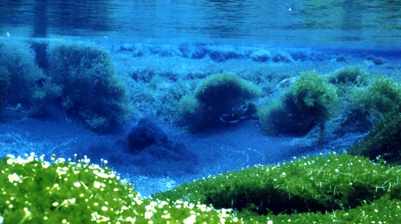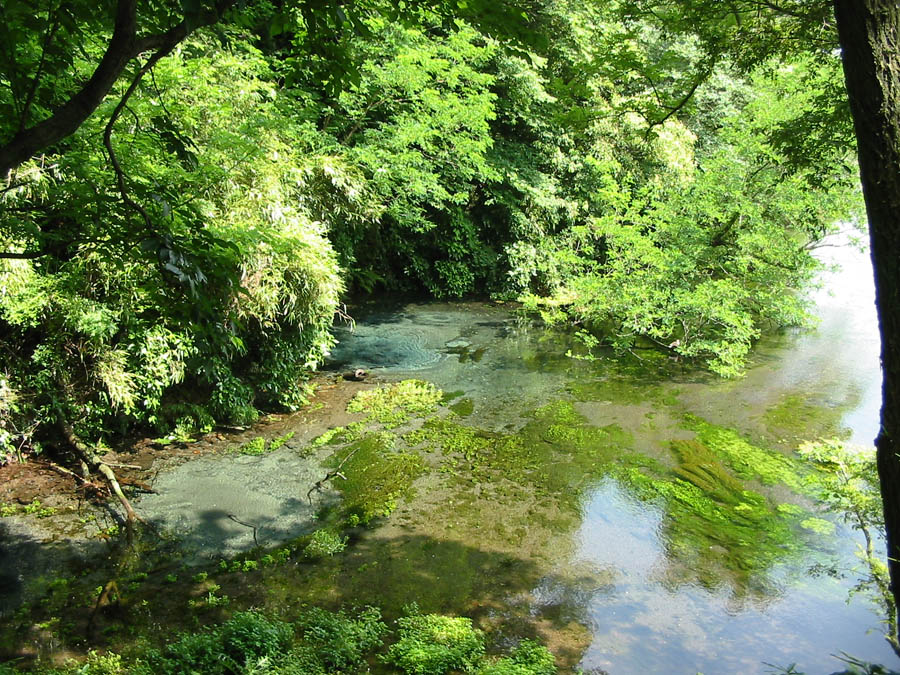 강 위로부터의 모습입니다.수초가 풍부합니다.