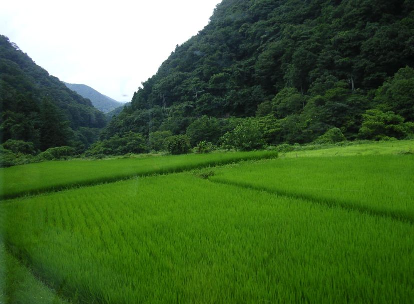 종점 빈고 오치아이역의 가까이의 차창입니다.