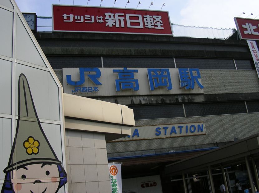 타카오카역의 역사입니다.앞에 있는 것은 히라키쵸 400년 기념의 마스코트입니다.