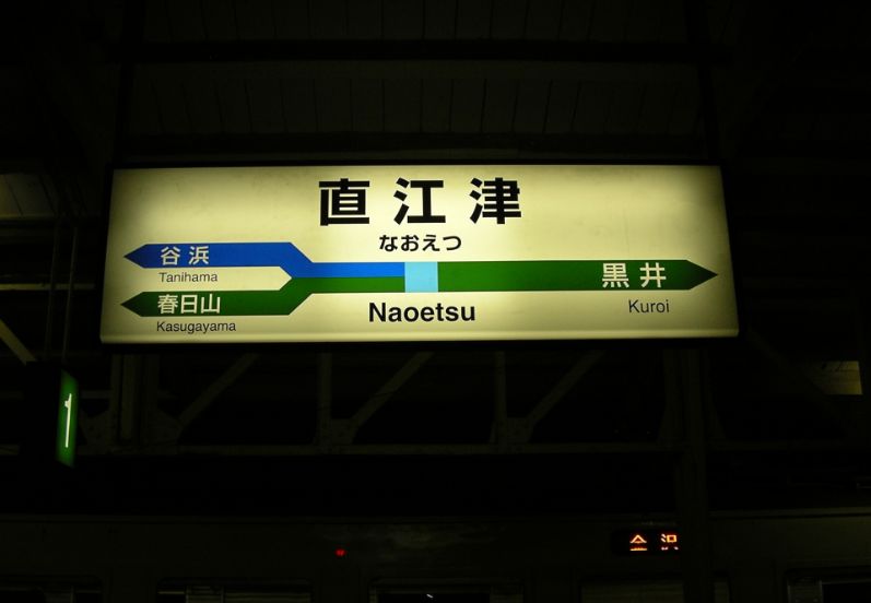 역사와 홈이 조금 떨어져 있었으므로 나오에쓰행의 열차에 놓칠 것 같게 되었습니다…