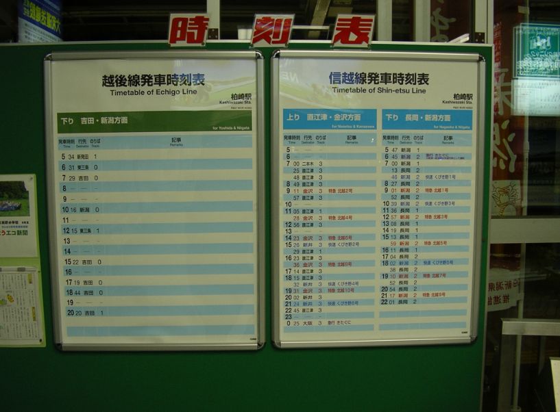 신에츠선과 에치고선의 시각표입니다만, 열차의 운행 갯수가 전혀 다릅니다.