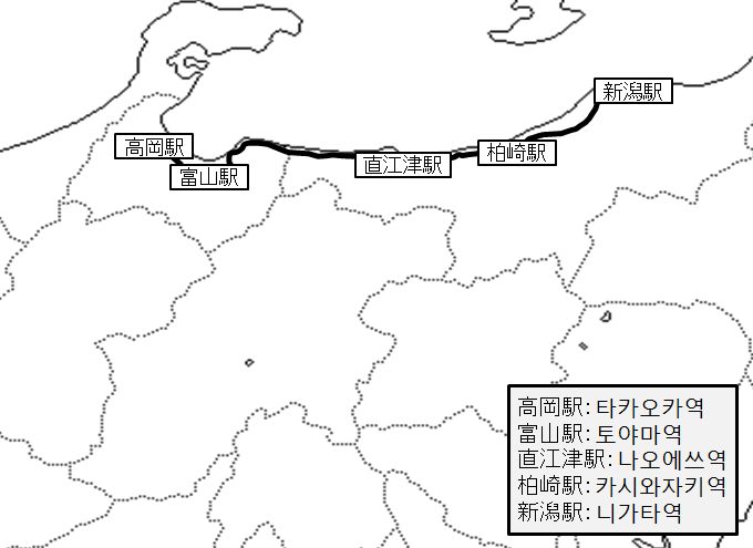 JR서일본과 JR동일본의 사카이메역인 나오에쓰역입니다.