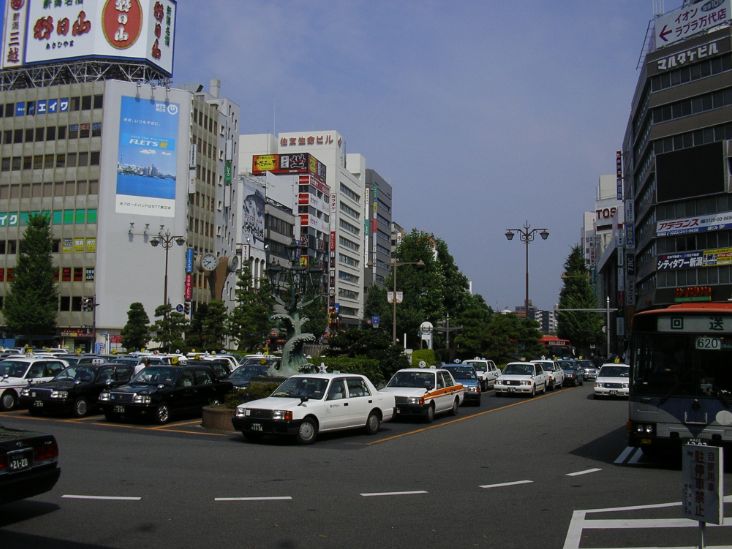 역전의 모습입니다.시내 전철도 달리고 있습니다.