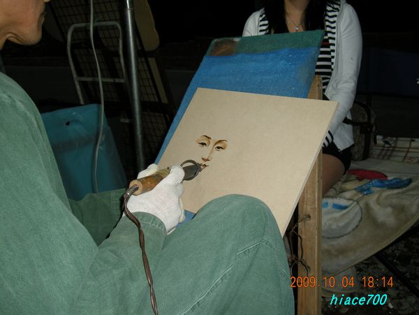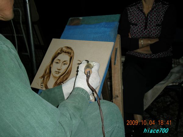 山を下ると、似顔絵焼き?が