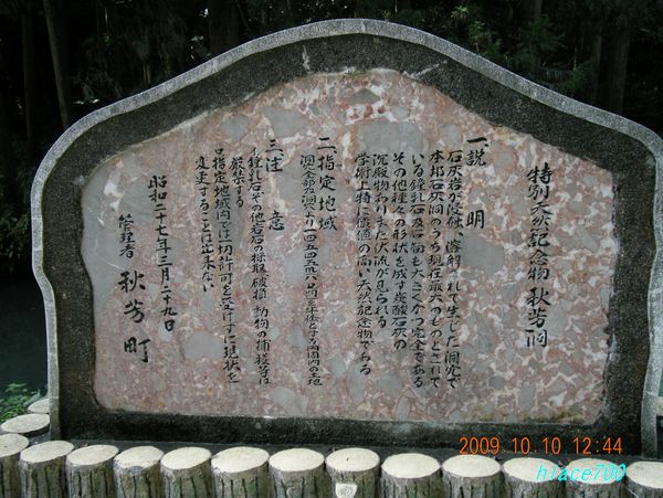 現在は不明であるが、オイラの小さい時の教科書に載っていた場所である。今まで二回訪れたことがある。10km程あるらしいが、公開部分は1km位。ゆっくり見学して1時間程度で見られる。この世の物とは思えない自然界が作り出した産物。