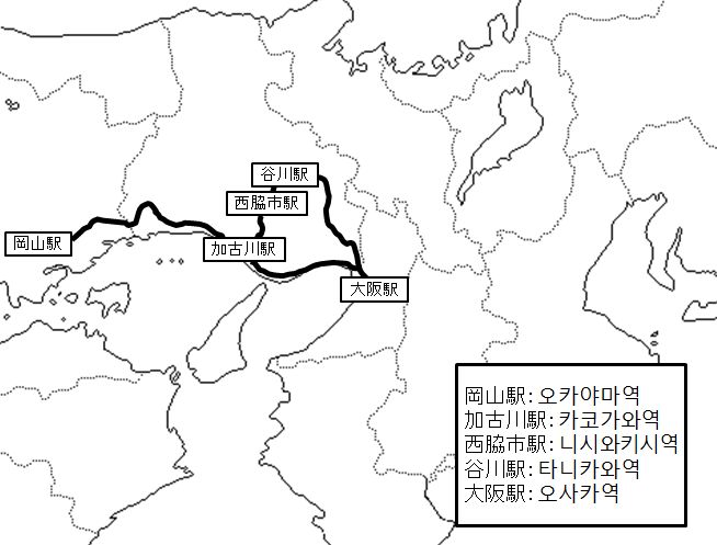 코베선과 카코가와선이 분기 하고 있는 곳(중)입니다.