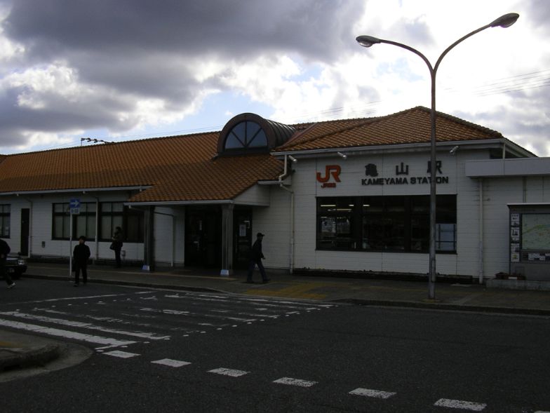 카메야마역의 역사입니다.JR토카이의 역이므로 지붕은 오렌지입니다.