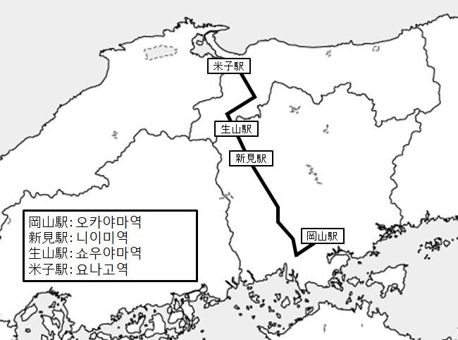 하쿠비선과 산인본선이 분기 하고 있는 곳(중)입니다.