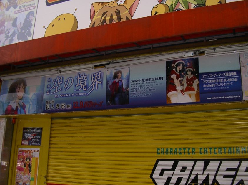 문득 가게의 간판을 보면, 극장판「하늘의 경계」의 광고가 있었어요.