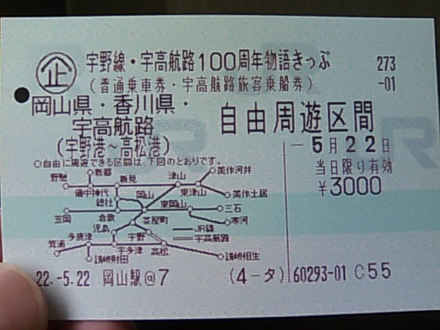 これを使うと、岡山・香川県のJR線全線と宇高航路を利用することができます。