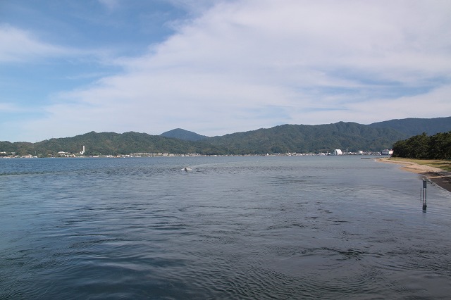 (橋立を挟んで南側と北側が宮津、間が与謝野町岩滝となる)