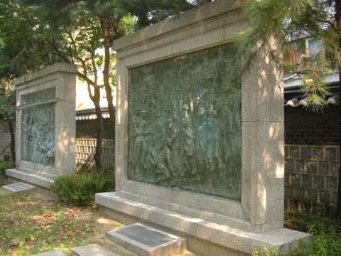 공원을 둘러싸는 독립 운동의 릴리프 하나 하나 보고 돌았던