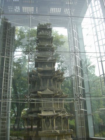 塔があります 酸性雨対策のためでしょうか? ガラスで囲ってありました