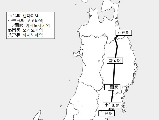 이와테 은하 철도나 푸른 숲철도는 모리오카 이남의 토호쿠본선과는 달라 산안을 진행합니다.