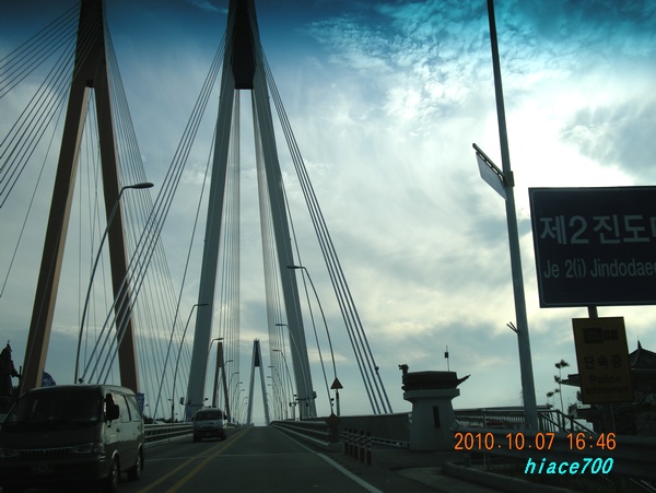 珍島大橋を渡る