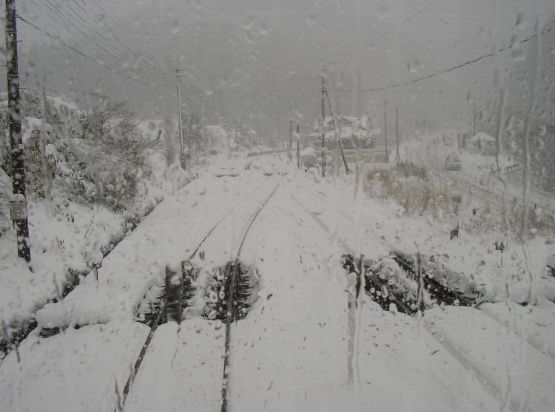 山の斜面の途中で再び列車は進行方向を変えます。