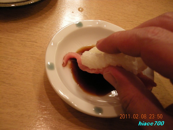 でもネタが醤油に落ちる前に返さないと.......