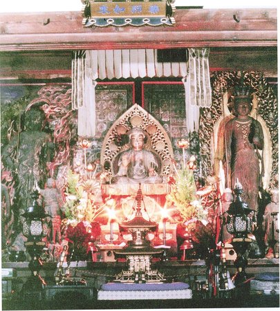 중앙의 약사 여래를 본존으로 해, 그것보다 큰 십일면관음과 가마쿠라 시대작의 부동명왕을 좌우에