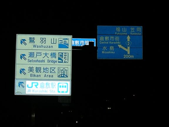 そのあと4時ごろには福山市を抜けて尾道市に入りましたが、そこで間違えて自動車専用のバイパスに入って大変な思いをしました^^;