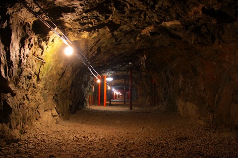 ロッドで穴をあけ、爆薬を仕掛けて岩を砕く。