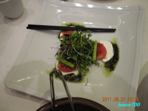 モツァレラチーズにちょっと酸っぱいソースが掛かって