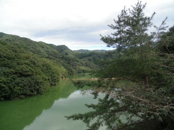 이시테천 댐에 의해서 형성된 댐 호수, 백로호수에 가설되는 다리입니다^^