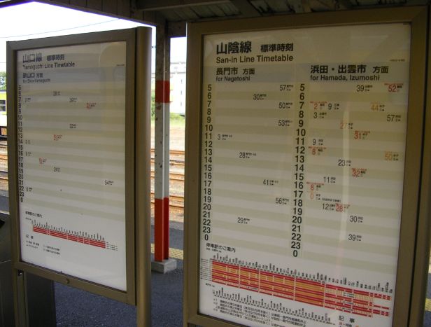 益田から東、松江、米子方面では本数も比較的多く、特急列車や快速列車も設定されています。