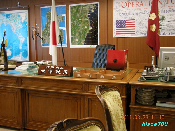 正面に親方、右手上から副大臣、政務官、次官........背広組