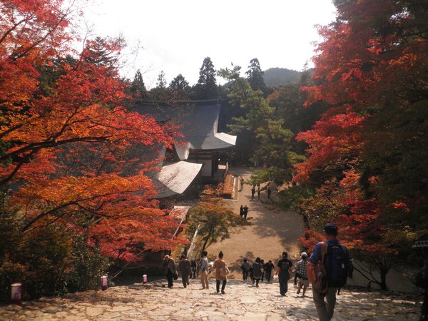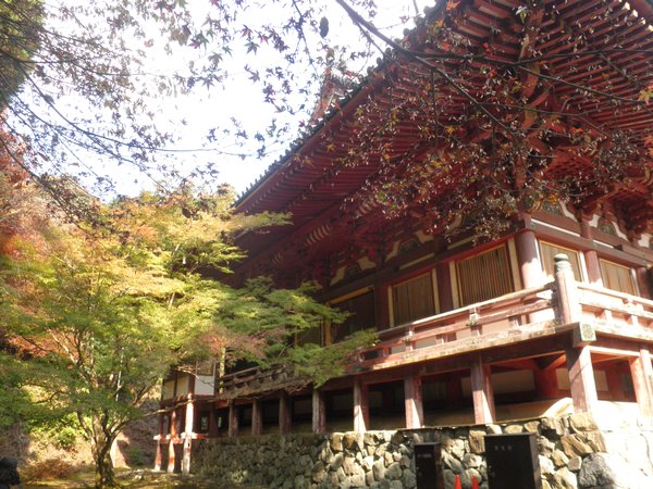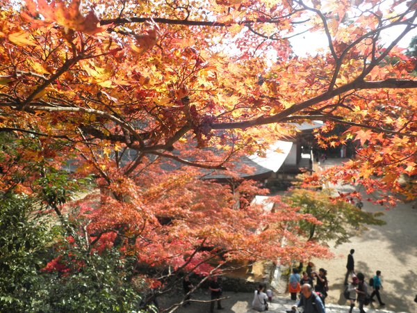 金堂前の紅葉。青葉と紅葉が半々ですね。