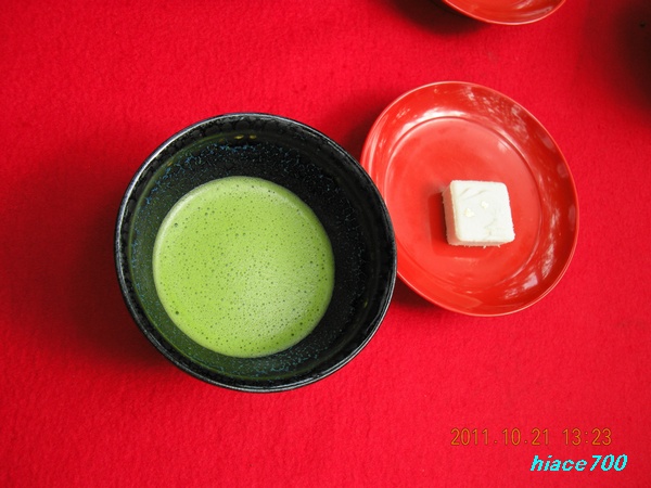 お菓子は生落雁みたいで柔らかい、中には餡、外には金箔、直ぐに盗られた