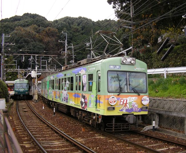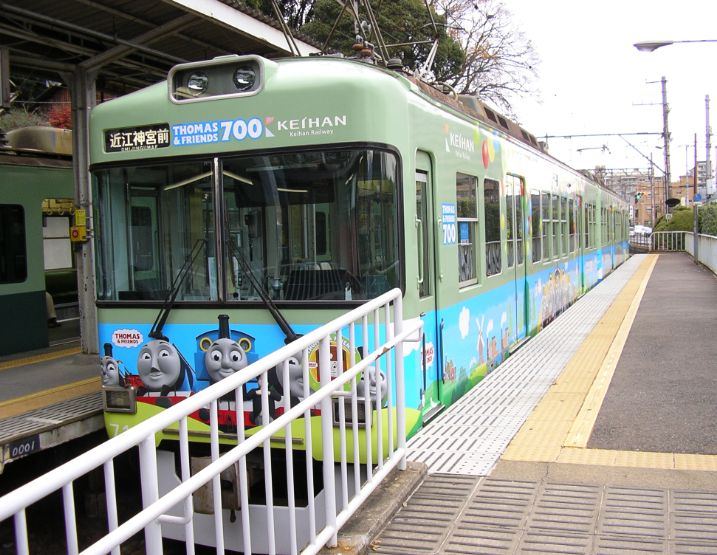 쿄토와 오사카 전철의 이시야마 사카모토선에는 많은 랩핑 열차가 달립니다.