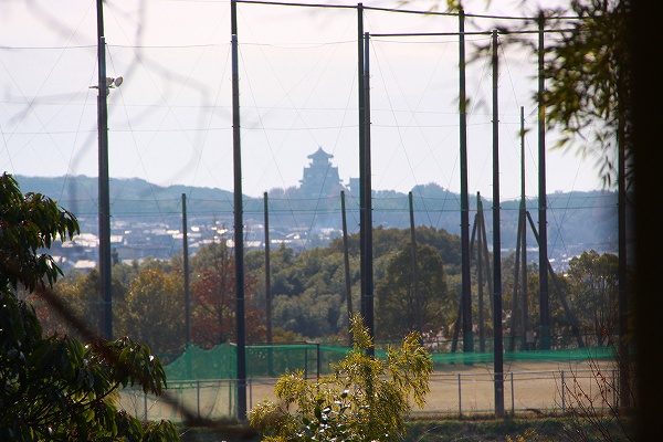 七面山(グランドの奥)と桃山丘陵。