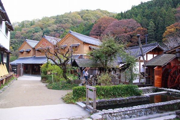 写真奥が香嵐渓。写真左側が宿場町。右側に足助八幡。
