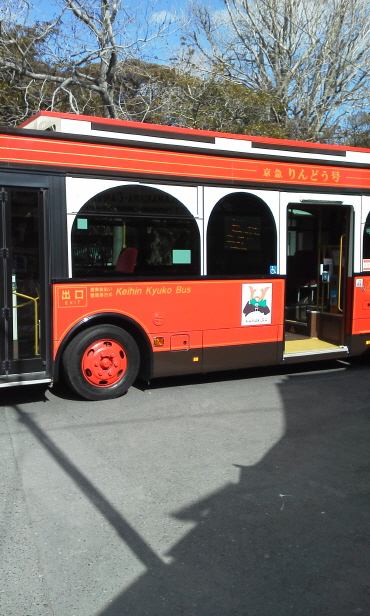 가마쿠라에도 관광버스가 다닙니다. 무사의 마을 가마쿠라에 어서오세요 라고 써 있습니다. 왠지 중화풍 버스인 것 같습니다만 시간이 부족하므로 다른 버스를 탑니다
