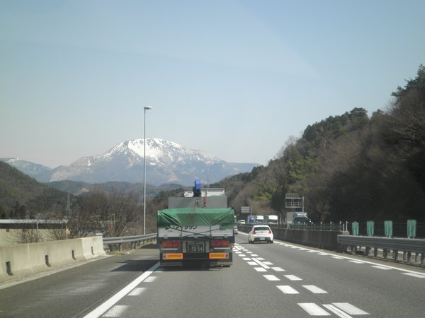 写真は名神高速。目の前に伊吹山が現れると、北陸道の分岐点はすぐそこです。