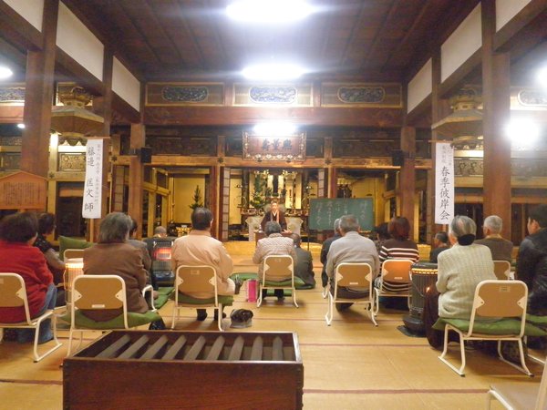 本堂の内部では、住職さんによる法話が行われていました。