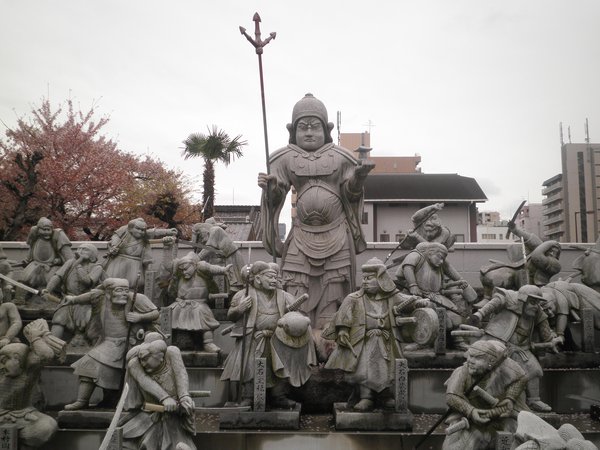 아코우의사의 별칭과 비샤몬하늘의 석상.