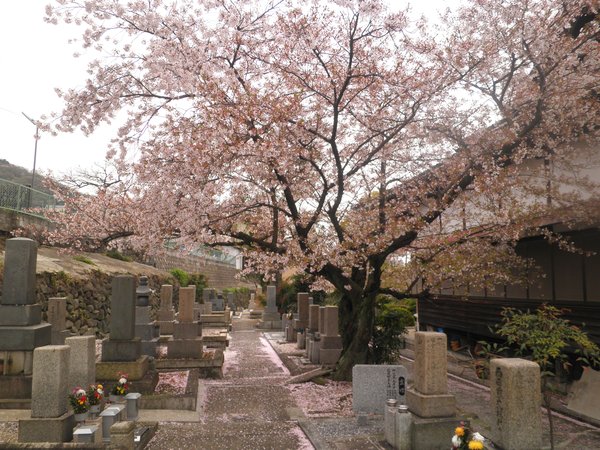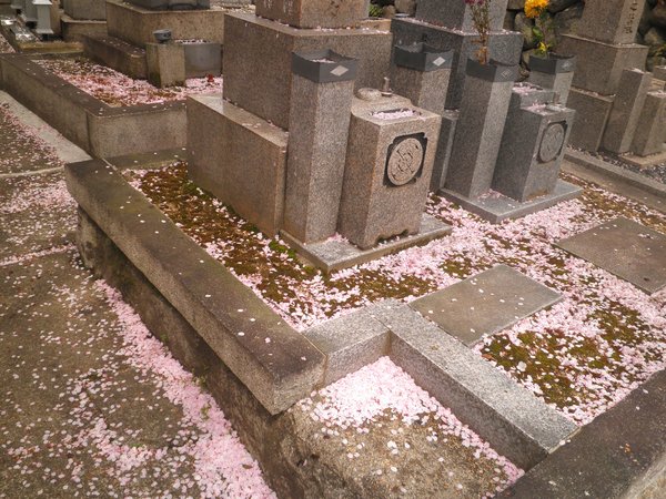 散った桜の花びらに覆われ、哀愁漂う雰囲気でした。