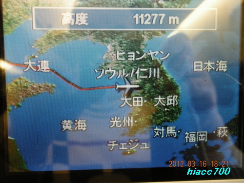 ソウル上空で、家内の家族のこと、韓国の友人達に思いを馳せる