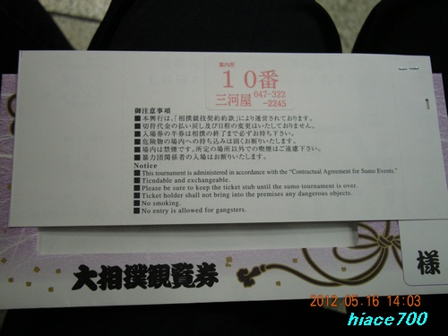 이 티켓은, 스모 안내소를 통해서 산 것이다