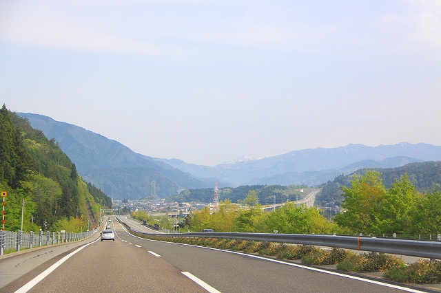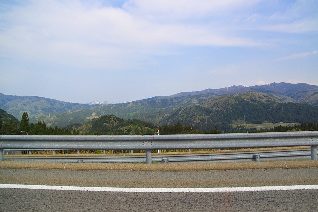 하쿠산(↓눈산)과 추측되는 산이 눈에 들어온다.