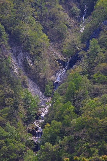 道路沿いから見えた滝。